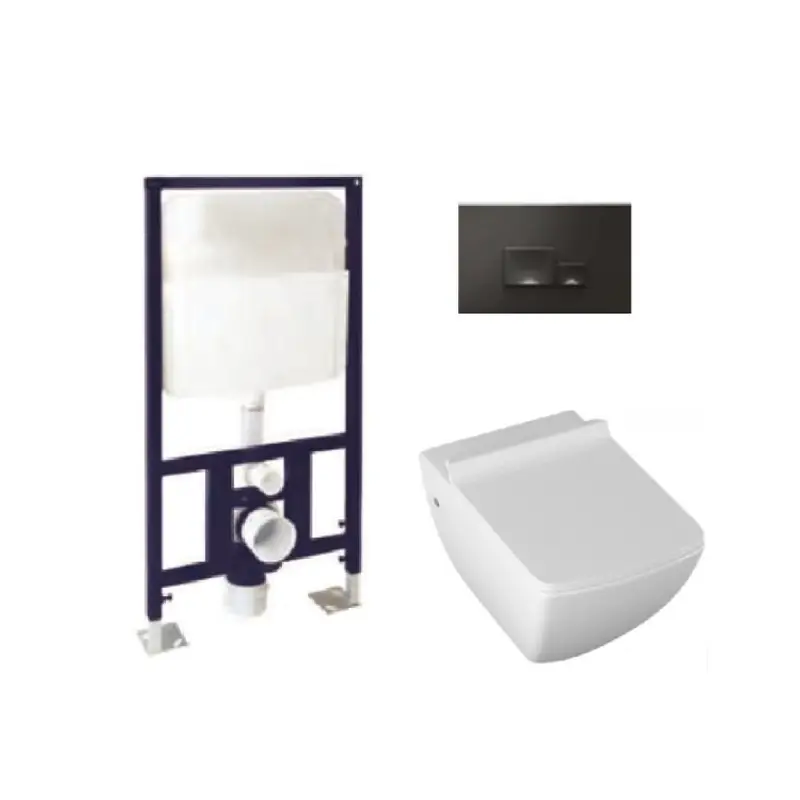 Унитаз с инсталляцией и клавишей ISVEA Purita подвесной белый/черный (10PL02007SET-BLC)